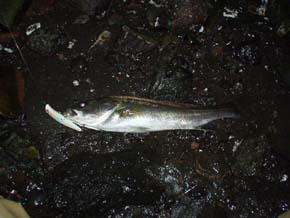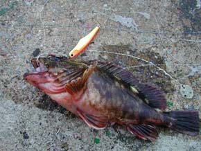 #48 2001年9月4日 久しぶりに釣りがしたい! そこで雨の合間を縫って横浜へ。 表層系のルアーは全て無反応…。 シンキングのスローアクションもダメ…。 試しに深いレンジでのトゥイッチを やったらこれが正解。 サイズはイマイチだが数が出た。 by あくた シンキングカルマ80 |