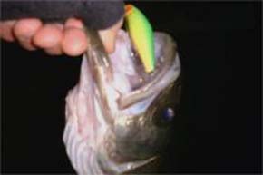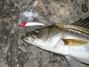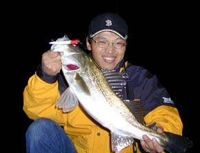 #64 2001年1月1日 横浜の上田さん モンロー115で今年最初の一本! <本人のコメント> 新年の一匹目はBANZAIで。 時化のうねりを避けた港に 魚が溜まっていました。 |