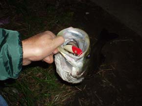 2002年10月22日 フロウの古根さん モンロー115でゲット <本人のコメント> 違う意味での人のプレッシャー。 事実、プレッシャーが消えてしばらく 魚の姿が見れました。 某S氏の代理リベンジ成功! |