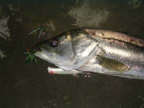 #41 2001年5月21日 「あらら、喰っちゃった…」。 これが正直な感想だった。 ルアーを派手にチェイスし、 果敢にバイトした30半ばだった。 困ったもんだと思いつつ 魚体を見て驚いた。 治りかけてはいたものの凄い傷だ。 反対側の面にも同じくらいの深い切り傷。 どうしてこんなに傷ついたのか…。 改めてシーバスの生命力に驚いた。 どんな時も諦め半分で蘇生してはいけない。 本来、こんなに強い力を備えているのだから。 そう再認識させてくれた印象深い1尾だった。 by あくた |