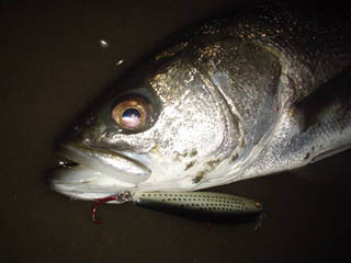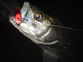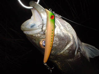 1月29日 ウルフ90 レゲェマドンナ 今日はカルマ130がパイロット スローで釣った魚が小魚を吐き出す ウルフで普通に生活している小魚を演出すると、テキサスバーガーだと思ったみたい |