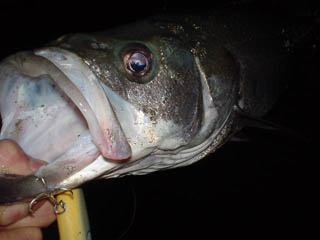 10月24日 カルマ100 イワシ 前後のフックが伸ばされる 完全に丸呑み状態。 元気に帰って行ったが、 流血していたので心配だ。 |