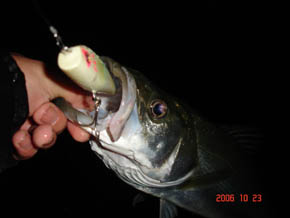 #791 2006年10月22日 大田区 横山 誠さん しっかりと水の流れる筋でカルマ100で食わせの釣り。ドリフト気味に表層をヒュンヒュンとトゥイッチさせたカルマにバイト。 10月も終わりに近づいてくるとカウントダウン。 ぼくらのホームはあと一ヶ月もすると厳しくなるから時間がある限り楽しみましょうね。 [from sasaki] |