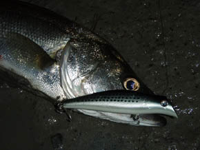#962 2007年8月7日 横浜市 櫛川 浩樹さん 徹夜明けの休みに出動すると釣れるようです!! ウルフ90はすごいです!! ボイル近辺に投げてトゥイッチ加えるとほぼ釣れます!! トリプル!!マークから興奮が伝わってきます!! 毎日釣るには毎日徹夜しなくてはなりませんね(笑)。 [from sasaki] |