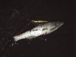 #1148 2008年1月19日 町田市 林 敏幸さん 「今年の初釣り。三年ぶりに多摩川へ。 が、結果はコレだけ。 つーか、最早シーバスでもねぇし(汗)。 も〜少し修行してきます。・・・脱兎!」 次回に期待ですね。 [from sasaki] |