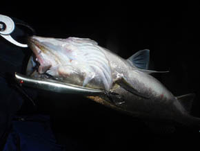 #1918 2010年10月10日 横浜市 苅谷 紀慶さん カルマ150(カタナ) ランディング寸前で指にフックを 刺して流血&魚に逃げられる。 い、痛いぞぉ〜! ファイト中にテンションが抜ける。 調べるとスナップがビロ〜ン・・・。 か、哀しいぞぉ〜! 初めてカルマ150で捕獲成功。 う、嬉しいぞぉ〜! 今夜の釣行は喜怒哀楽を実践しました。 苅谷さんが幸福であることが伝わってきます。 [from sasaki] |
