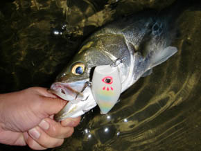 #1921 2010年10月12日 和歌山県 あくたさん プレイズ110 チェリーサンバースト 忙しくて、すぐにメールできなかったんですが、一昨日の晩に様子見に行ったところ、いい感じで釣れました。ちなみに、この前に2発出たんですが、片方は全く乗らずで、もう片方は一瞬掛かるも即バレ。 ただ、最後に来たこいつが一番いい魚でした。80前後のヒラです。 獲れなかったやつらは、最初のが50〜60、 2本目が70前後ってところでしょうか。 やっぱトップは楽しいですネ! でしょ! [from sasaki] |