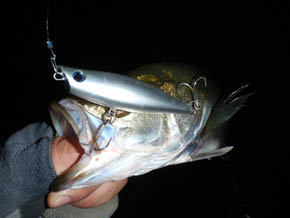 #2124バンザイ! 2011年8月10日 秋田県 HIACEさん 米代川でうれしい一本捕れましたので報告いたします。 向かい風のダウンクロスでデットスロー気味に漂わせながら巻いてくると、ドボンと喰われました(笑) 北のリバーシーバス、銀ピカ85pです。 お盆過ぎの残暑までが限界かな? 意外に、期間は短いのです(笑) 初投稿ありがとうございます! 米代川が大変なことになってるみたいですね!! [from sasaki] |