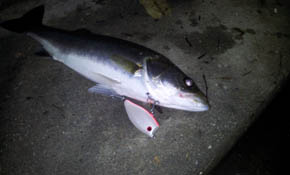 #2121 2011年8月6日 大阪市 くまさん HugHug(RH/ホイル) いつものホームは、年に一度の「大花火大会」 昨年の大会後に、エライ目に遭った事を経験した為、以前、通っていた河川へ、プチ移動。 潮は、ユル?く、橋脚の明暗部を、「ヨタヨタ」させてると… 一投目で、ゴン? 「HugHugが食べられるー?」 ナイスなサイズで、楽しみました。 花火大会と祭り(夏フェス)の季節です! 明日8月8日は、もう涼風至る立秋なのにね。 [from sasaki] |