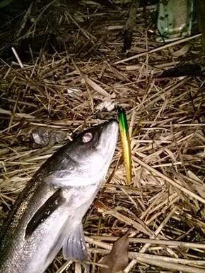 #2665 2013年11月6日 北区 蜂谷 和弘さん ポップン・ス−ハグ(コノシロ) ここ数日、いい魚がいるのを確認していたので 連日で出撃していますが、本日が一番サイズ、数ともに最悪な状態でした。 最大でギリ60に届くか位のヤツでした。 でもトップに出てくれたので満足(≧д≦) 不満の中の満足なんですねぇ。 それは満足なのか不満なのか。難解だ。 [from sasaki] |