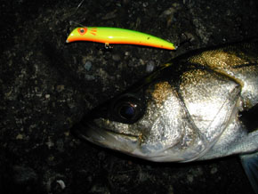 #30 3月13日 昨日の好調はいずこへ・・・。 カルマ130のよろめきで誘って やっとのことでスズキサイズを 数本ゲット(笑)。 by あくた カルマ130カタナ |