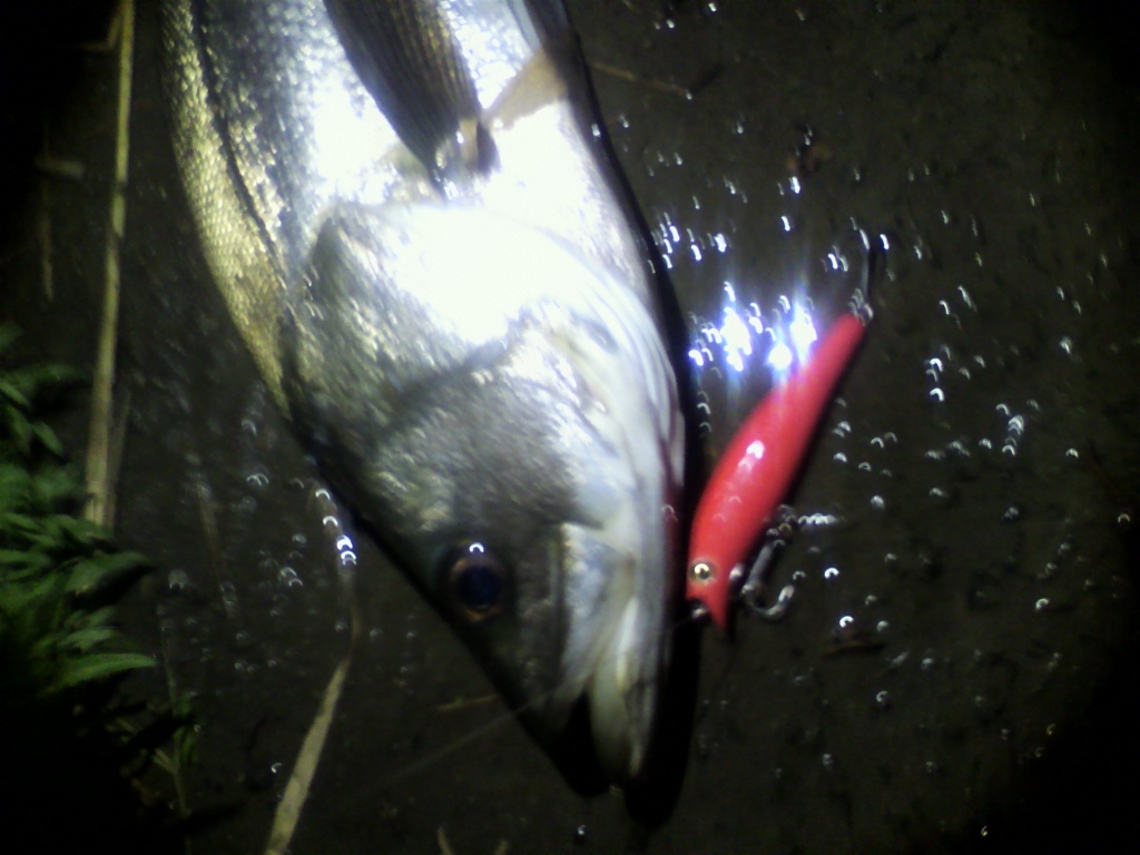 ほぼ満潮の中、ベイトがザワつき、たまに捕食音、ウルフ115が丸呑みでした。