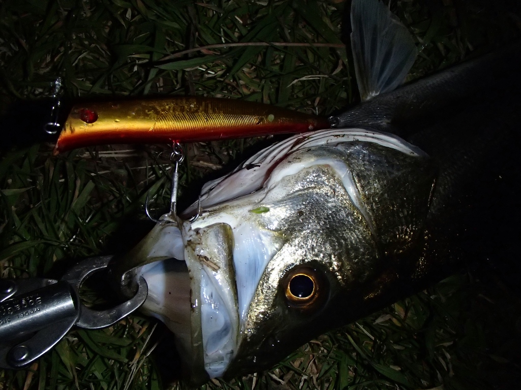潮目の中を漂わすともそっとしたアタリ、すかさずあわせると重量感満載!手前でやっと浮いてきて思わず手でランディングしちゃいました。