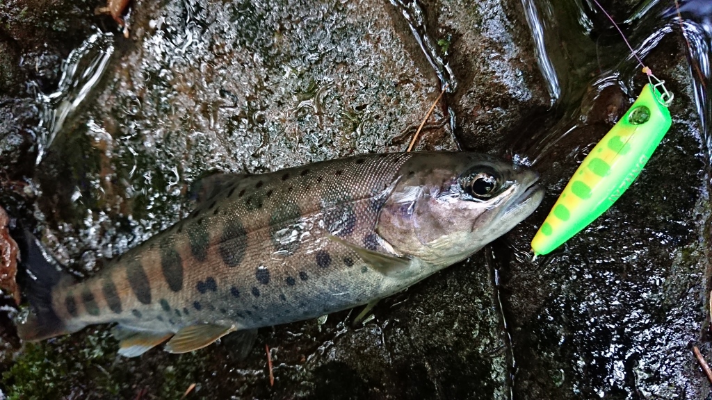 ベイトが爆ぜた!そこかっ!とキャストして流したら、一撃でした。