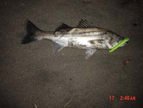 #42 2001年5月29日 時合いは上潮時。 潮に乗って入ってくるやつを狙い打つ。 ブレイク上をしつこくせめて1時間後。 バタバタと50チョイが連発した。 やっぱり群れは通ったようだ。 どいつもこいつもやたらと重い グッドコンディションだった。 by あくた シープ90ボラ |