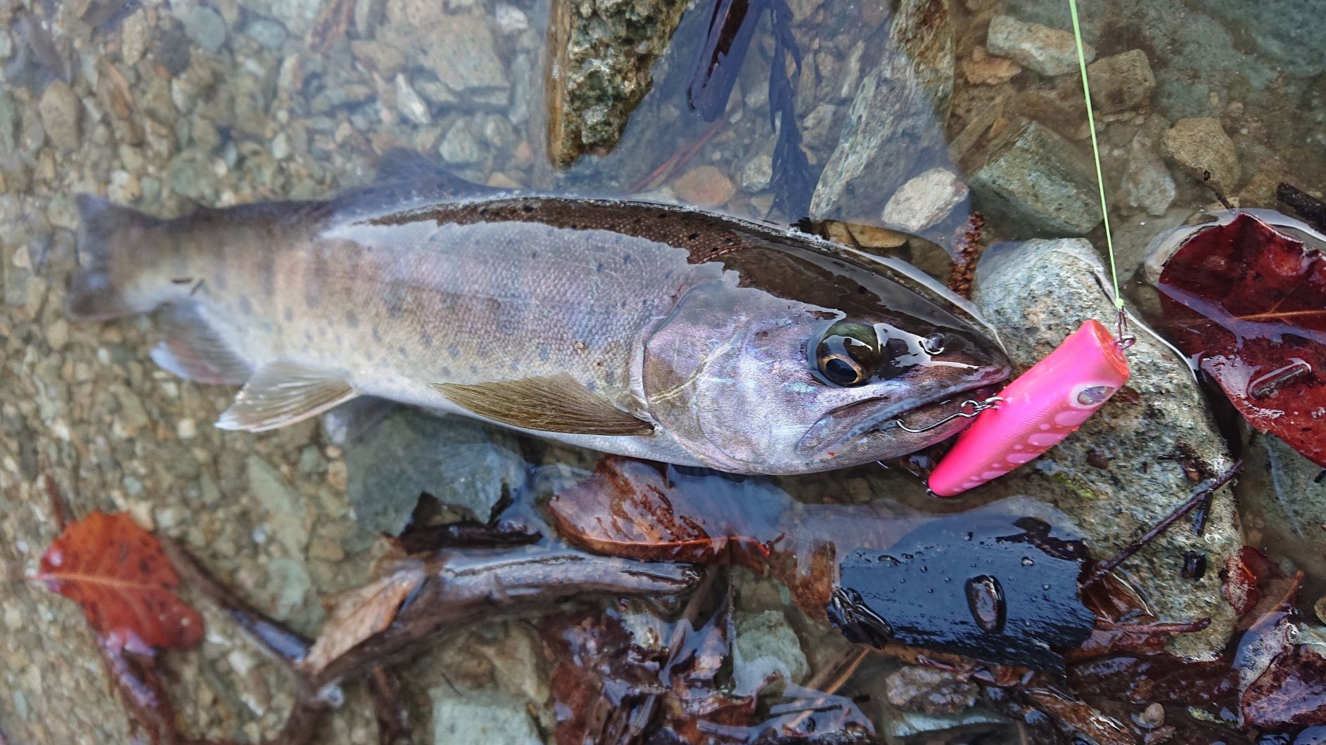 湿原河川では決して大きくはないようですが、イメージ通りに突き上げてきた50クラスのアメマス!大満足です!!